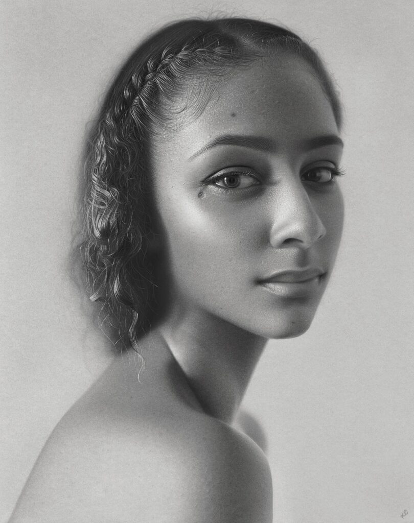 During the process of creation, reference photos become less relevant and later abandoned. There’s a flow which happens naturally and organically when I’m in the zone drawing. So much so that before tangible references and concepts were established, the initial depicted expression of a subject model seen in a dream illuminates and reveals the true image I wanted to capture in the first place.
